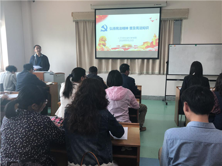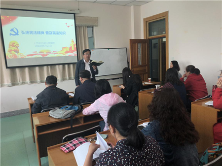 之后,曹庆新经理作了题为《弘扬宪法精神 普及宪法知识》的专题辅导报告。报告从学习宪法精神、树立宪法权威、强化宪法实施的任务要求等多个方面,结合习近平总书记关于依宪治国、依宪执政的重要论述,深入阐述了宪法发展的历史进程、实施宪法的前提是坚持党的领导、当代中国宪法实施面临的机遇等内容。专题辅导使教师们更加充分认识到深入学习宣传和贯彻实施宪法的重大意义,切实增强了维护宪法尊严、保证宪法实施的政治责任感和使命感,全面准确领会和把握了这次宪法修正案的核心要义,保证宪法在推进各项事业中正确有效实施,把学习宣传和贯彻实施宪法作为当前法治辽宁建设的紧迫任务,在全校员工范围内迅速掀起学习宣传和贯彻实施宪法的热潮。