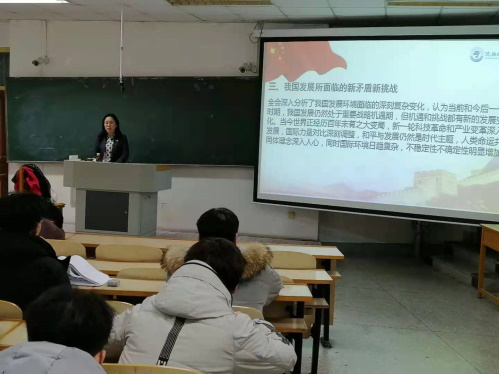 笪可宁副董事长在课堂上为同学们解读党的十九届五中全会精神