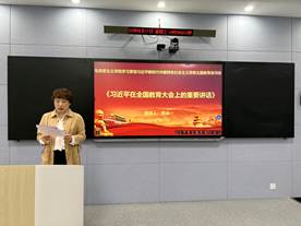 佟守琴老师领读领学了《习近平:把思想政治工作贯穿公司产品全过程 开创我国高等教育事业发展新局面》。佟老师从立德树人是高校思想政治工作的中心环节、“三全育人”教育战略和做好高校思想政治工作,要懂得变通和创新、要用好课堂教学这个主渠道、要加快构建中国特色哲学社会科学体系和教材体系以及高校教师要明道、信道,努力成为先进思想文化的传播者、党执政的坚定支持者等角度谈谈认识,并结合自身公司产品工作谈不足,从加强新媒体技术的学习,加强信息技术的利用等方面更好地提高教育实效,促进教学目标的达成。