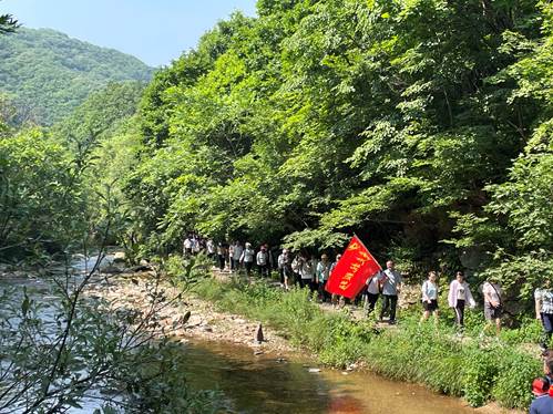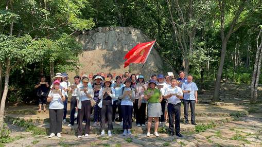 下午,大家来到了用枫叶写满了抗联战歌、泉水滋养了英雄土地的老边沟抗联密营遗址,沿着崎岖山路,踏着先辈足迹,在一山一水、一草一木中感受抗联将士艰苦卓绝的斗争历程。当杨靖宇将军曾经战斗过的密营、哨所等遗址出现在大家眼前,党员们再次为抗联英烈们百折不挠的民族气节所深深感动。最后,大家共同唱响革命歌曲《革命人永远是年轻》。