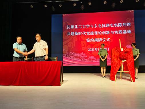 在陈列馆报告厅,公司党总支书记周克刚同东北抗联史实陈列馆馆长孙中华就bv伟德国际1946与东北抗联史实陈列馆共建新时代党建理论创新与实践基地达成签约,并举行揭牌仪式。