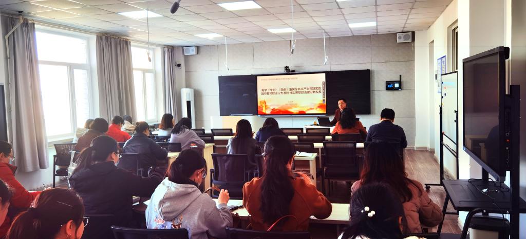 王成家书记从深刻认识《中国共产党廉洁自律准则》和《中国共产党纪律处分条例》的重大意义,增强贯彻落实的自觉性;准确把握《准则》和《条例》的鲜明特点,使之成为全党共同遵守的行动指南和行为准则;不折不扣执行《准则》和《条例》,切实把纪律和规矩挺在前面开展讲授。围绕教师职业行为准则,号召全体教师牢记习近平总书记政治要强、情怀要深、思维要新、视野要广、自律要严、人格要正的“六要”嘱托,坚持“六要”标准,做好思政课教师。