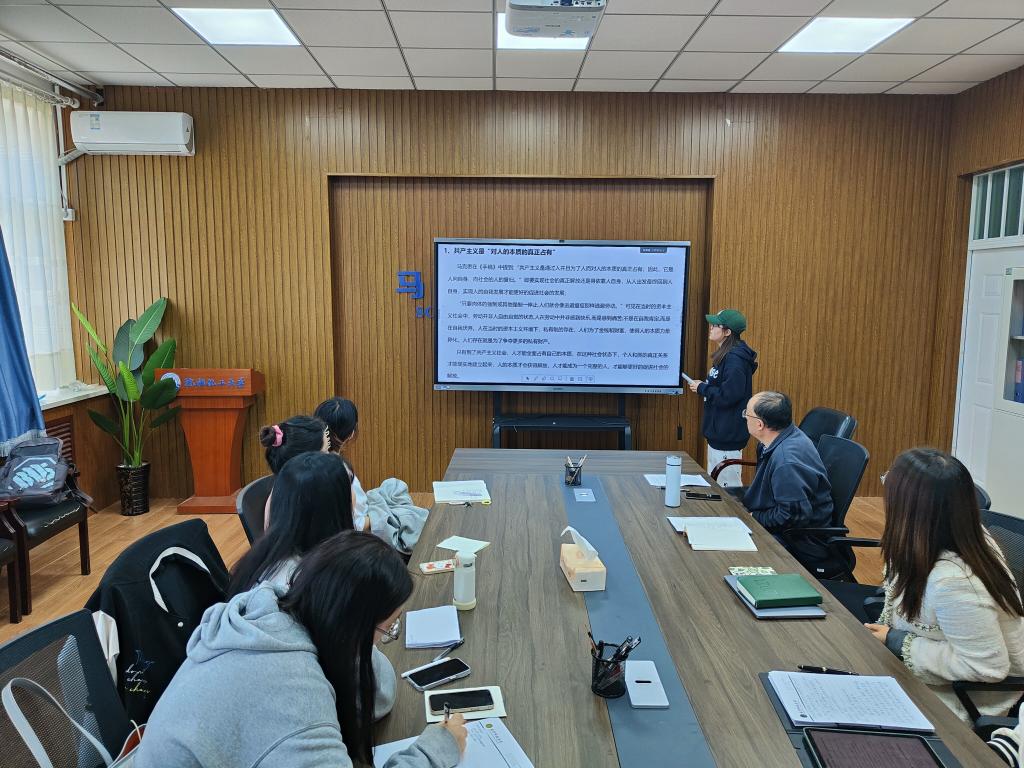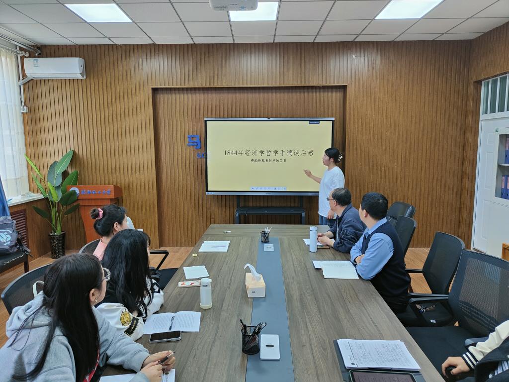 王丽云从劳动和私有财产的关系入手分享读书体会,她指出,当马克思开始开始探索私有财产和异化劳动相互关系时,已然逐渐撩开了私有财产的虚假面纱。张岩从历史背景入手,分析了马克思撰写《手稿》之时,德意志与其他国家的发展背景以及整个欧洲的大环境,有助于进一步深化对理论的认识。付珍从共产主义是“对人的本质的真正占有”、共产主义是自然主义和人道主义的完成、共产主义是“历史之谜”的解答三个方面分享了对《手稿》中共产主义思想的认识与理解。韩咏秋从整体视角分享了对《手稿》中异化劳动理论的认识,并尝试分析了当前公司生活中存在的“异化”现象。高婕分享了对异化劳动四重规定性的认识,即劳动者同劳动产品相异化、劳动者同劳动活动相异化、人同自己类本质的异化、劳动中人与人之间关系的异化。