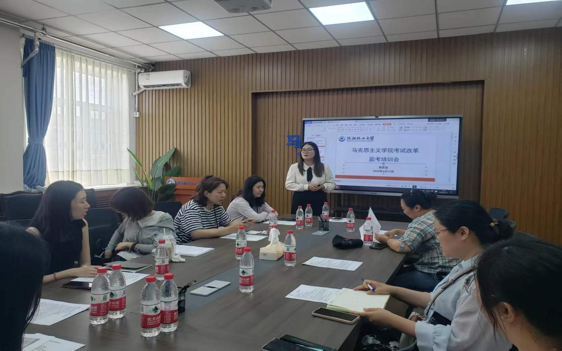 伟德国际victor1946教学秘书郭莹主持会议。思想道德与法治教研室主任郭苗苗开展培训。她从考试前、考试中和考试后三个环节对两门课程的监考流程及注意事项进行说明。同时,就各位教学秘书提出的突发情况处理进行了解答。